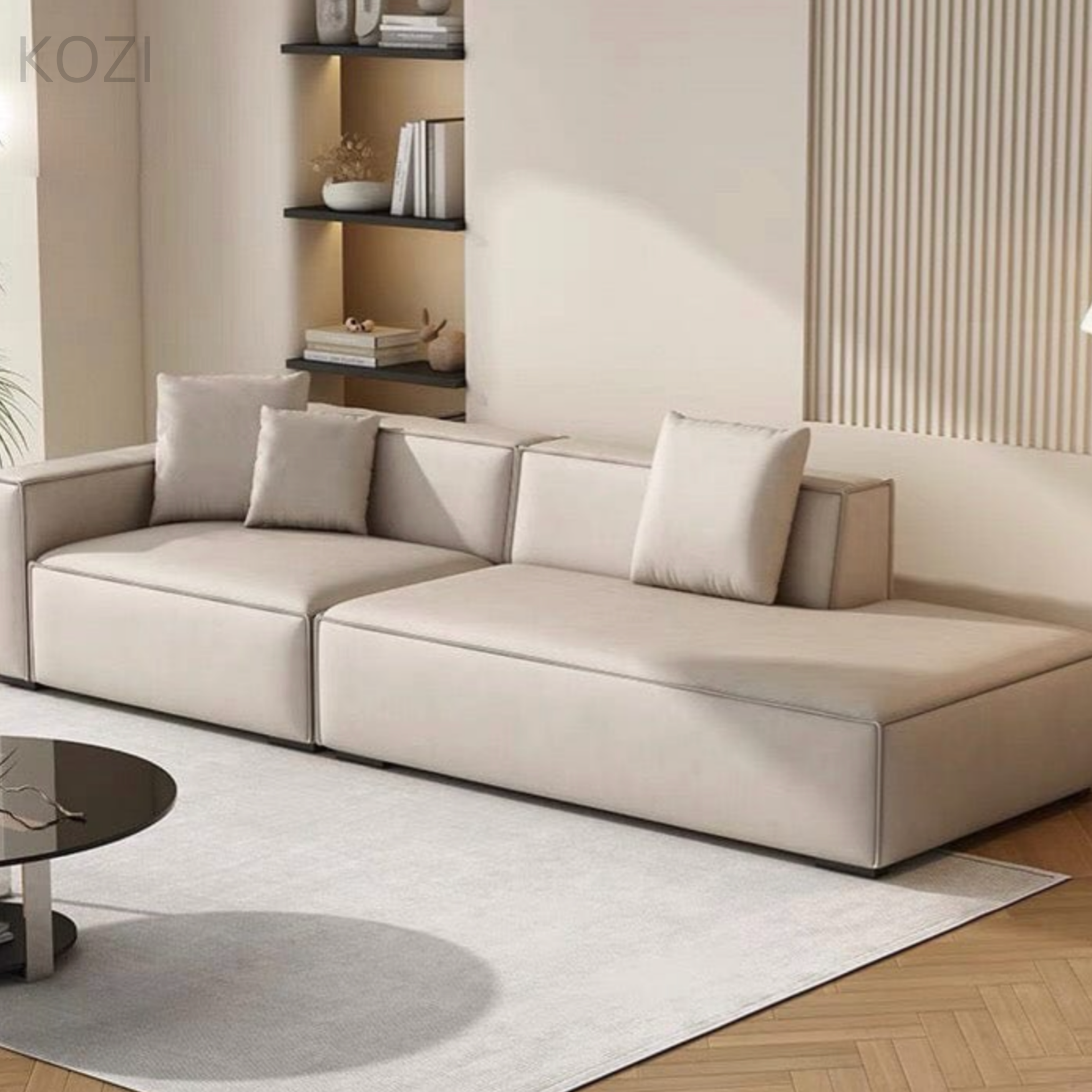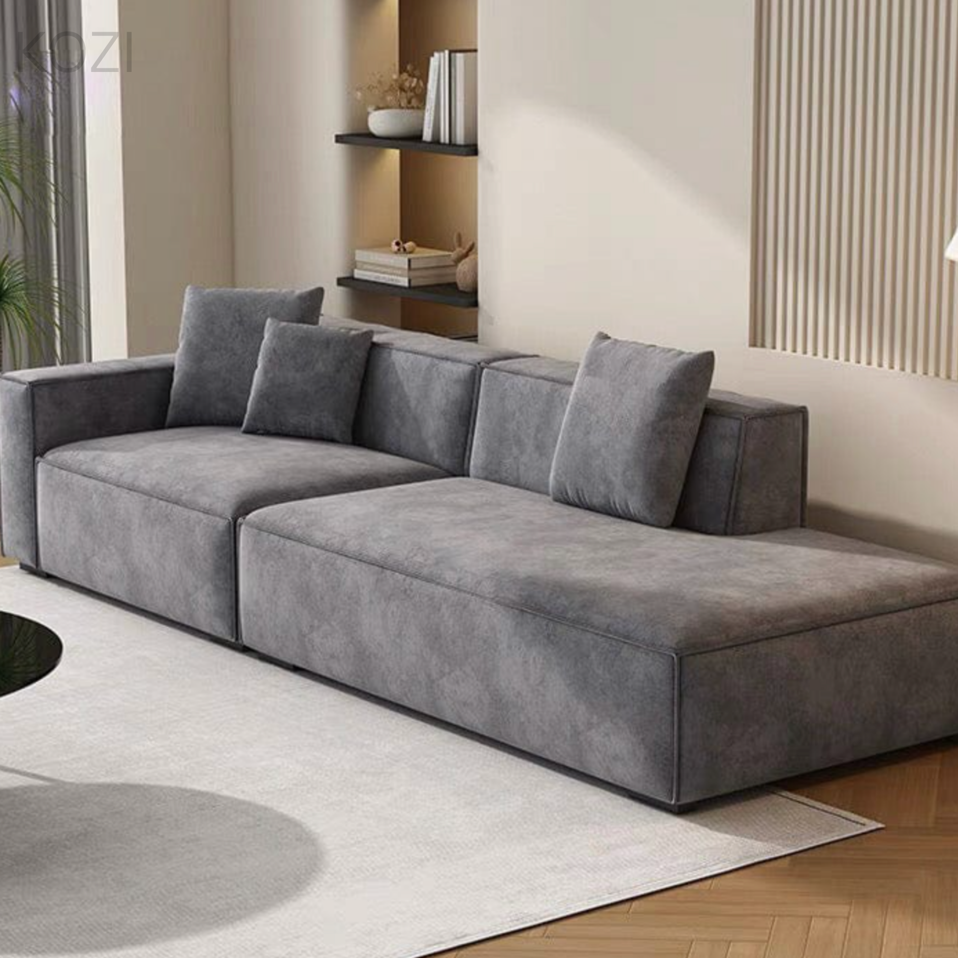 The AXIS Modular Scratch Resistant Sectional Sofa exudes sophistication with its sleek, straight lines and elongated chaise. Its plush cushioning offers a luxurious and comfortable seating experience. With a modern design, this sofa adds a touch of contemporary elegance to any living space. With the AXIS Modular Scratch Resistant Sectional Sofa, you can elevate your home with a stunning and stylish statement piece.