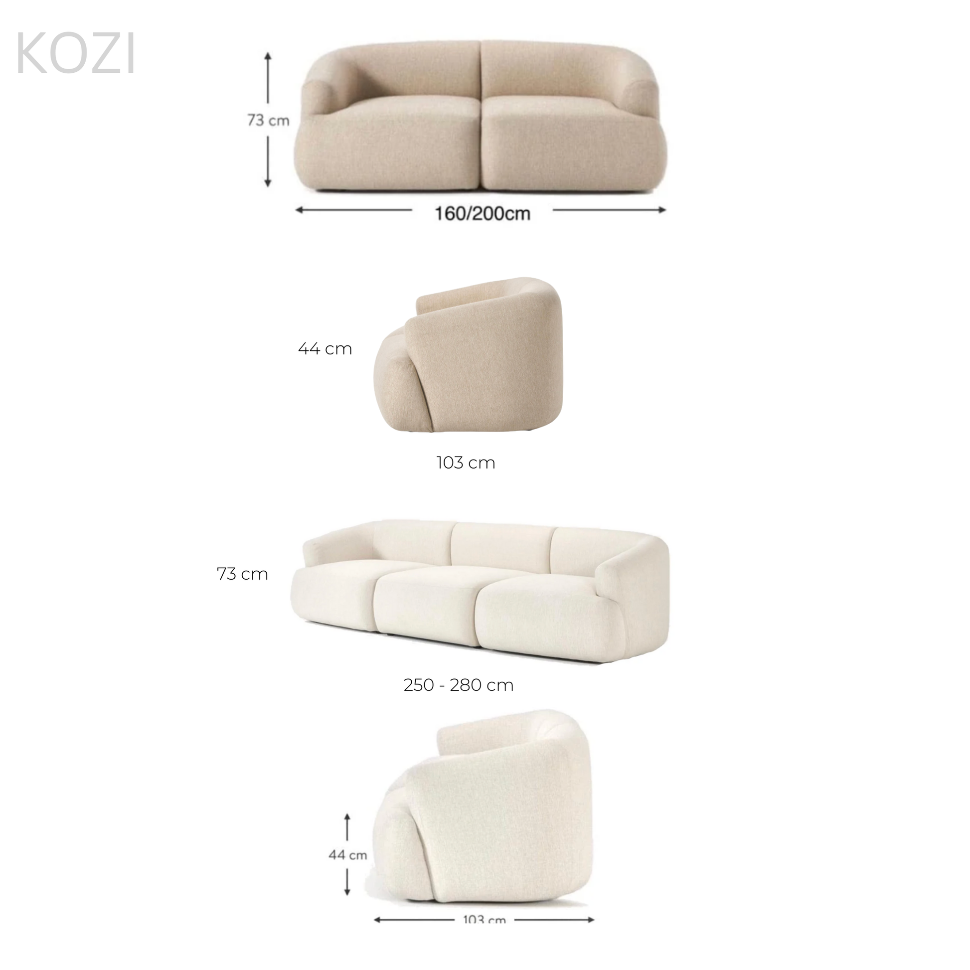 L280 x W103 x H73 cm