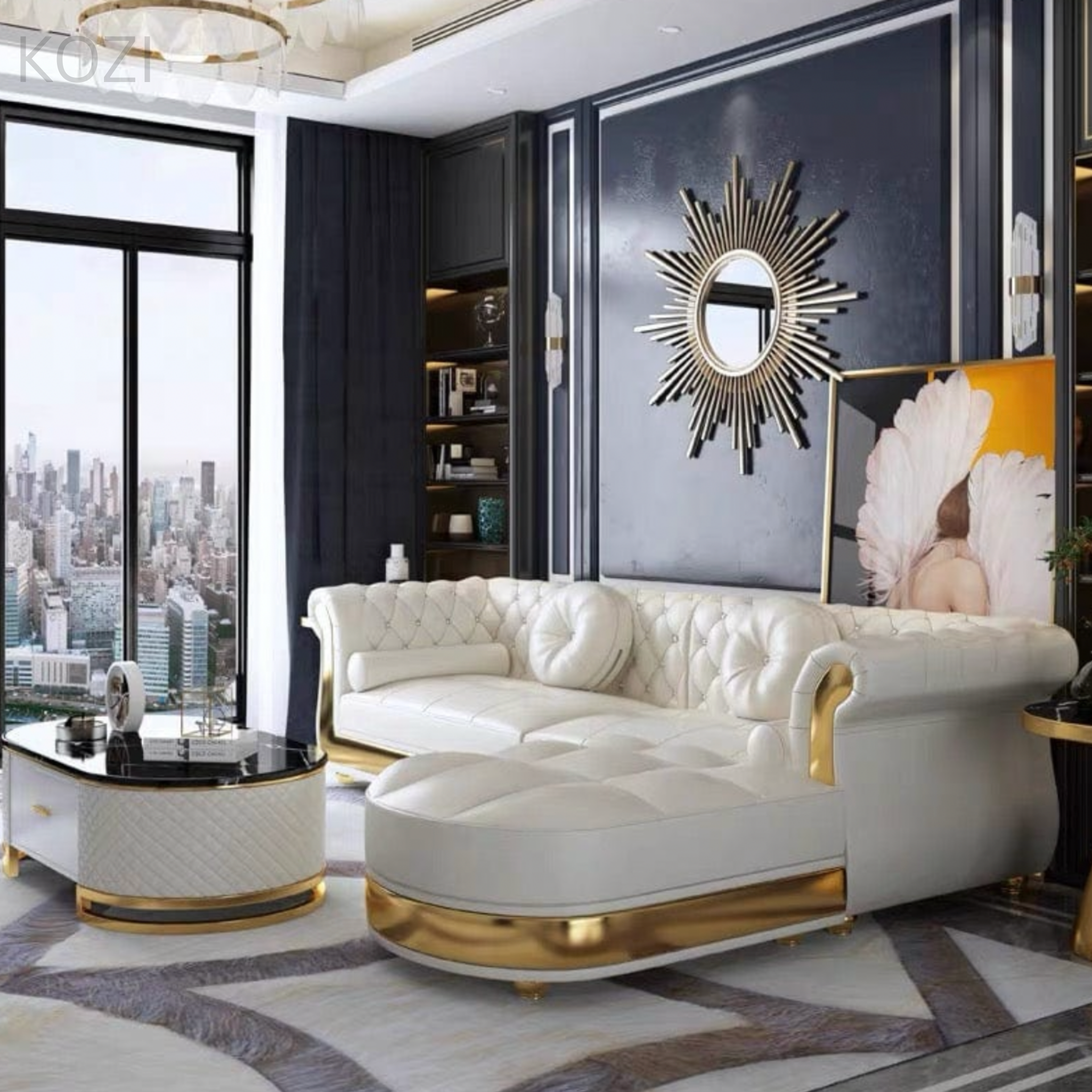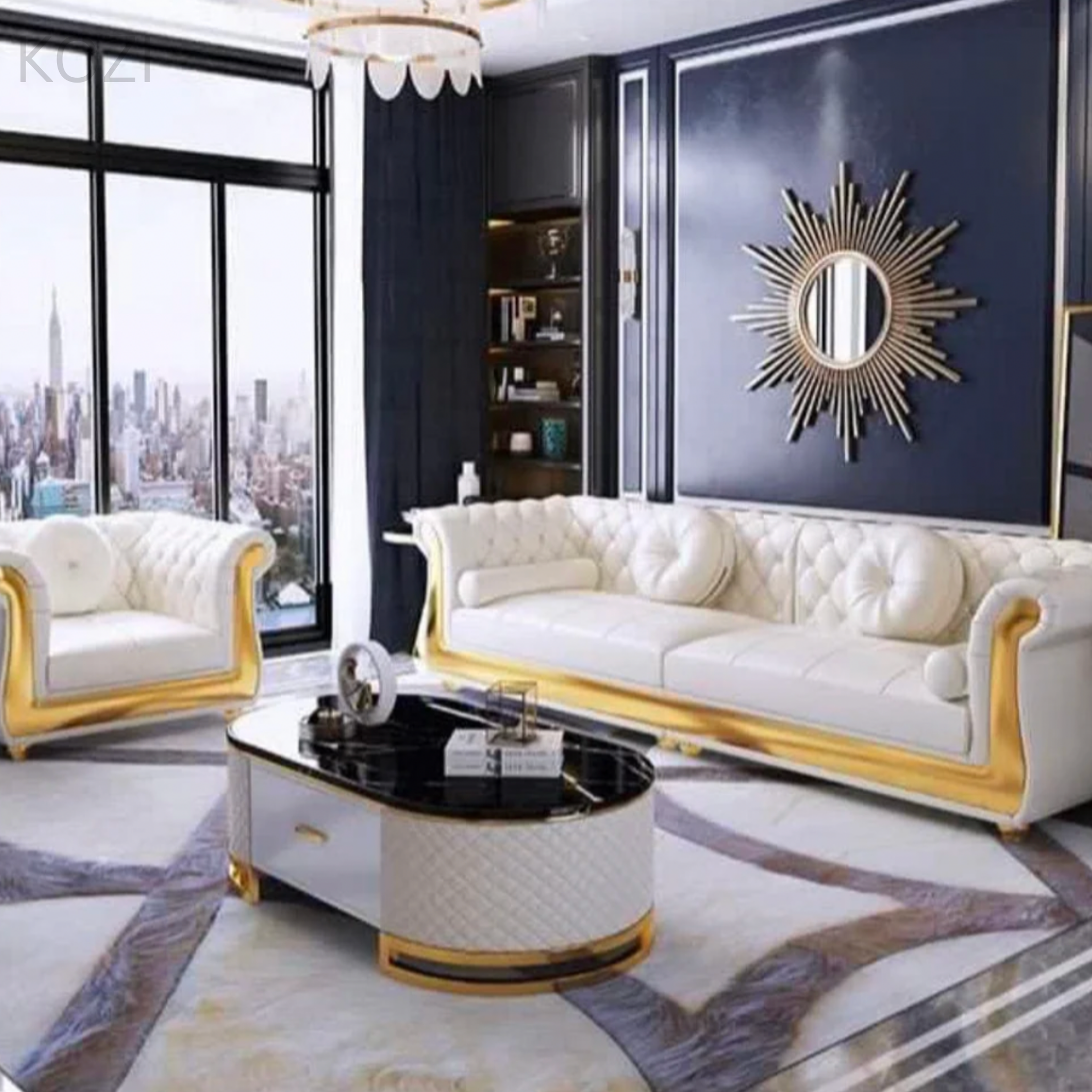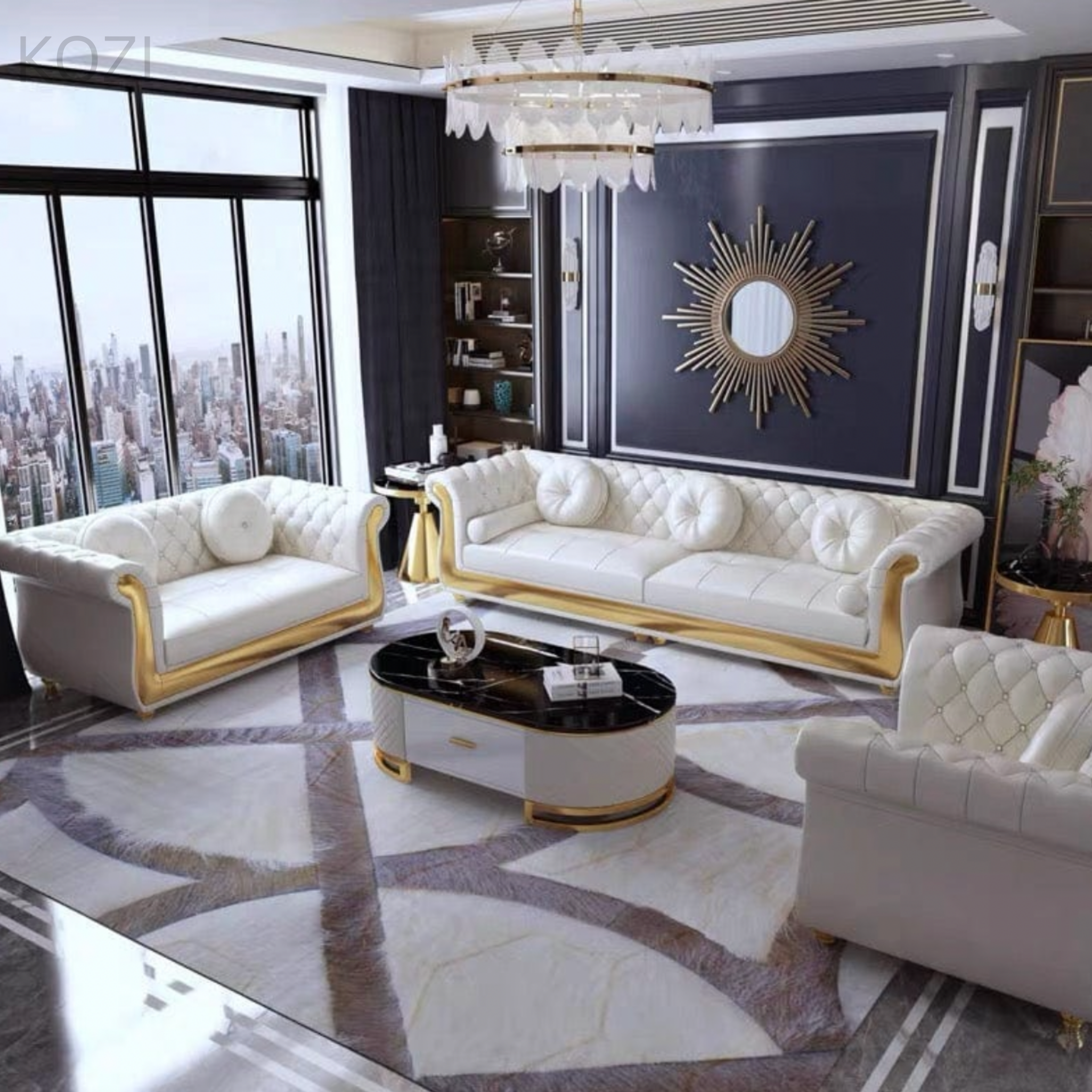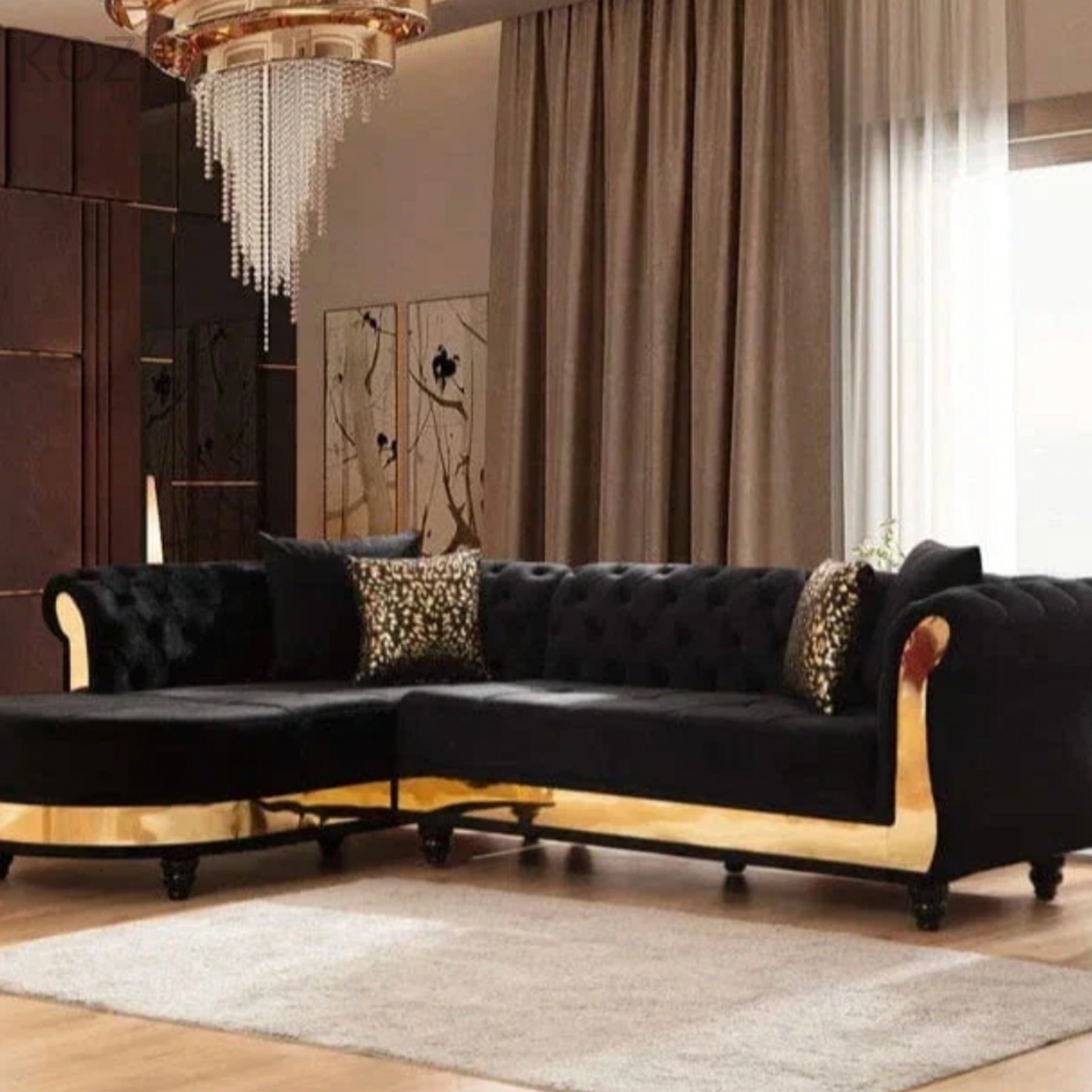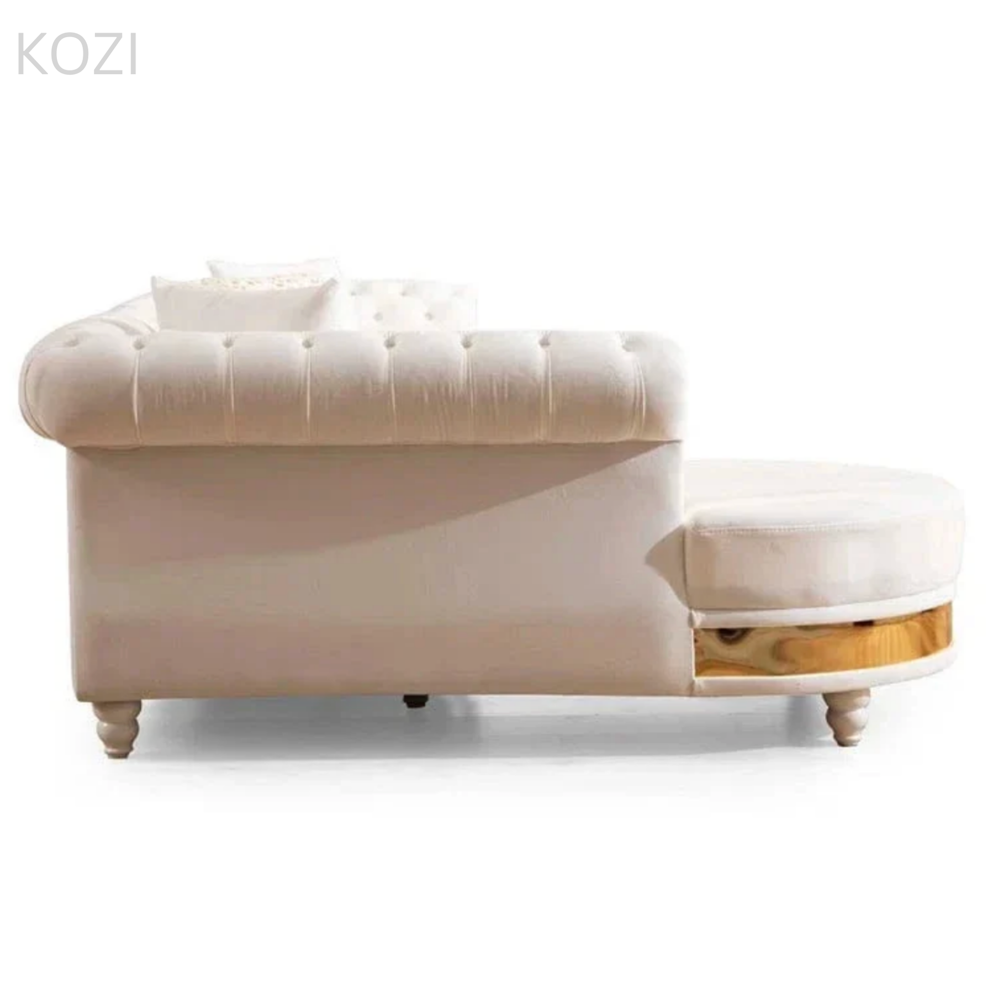 The Nadine Scratch Resistant Tufted Chesterfield Sofa showcases a refined Victorian-inspired design that elevates the elegance of any living area. Equipped with a stylish gold base and crafted from water-repellent, scratch-resistant fabric, it is ideal for homes with pets, combining durability with sophistication. Its contemporary, visually striking appearance makes it a standout addition to your interior.