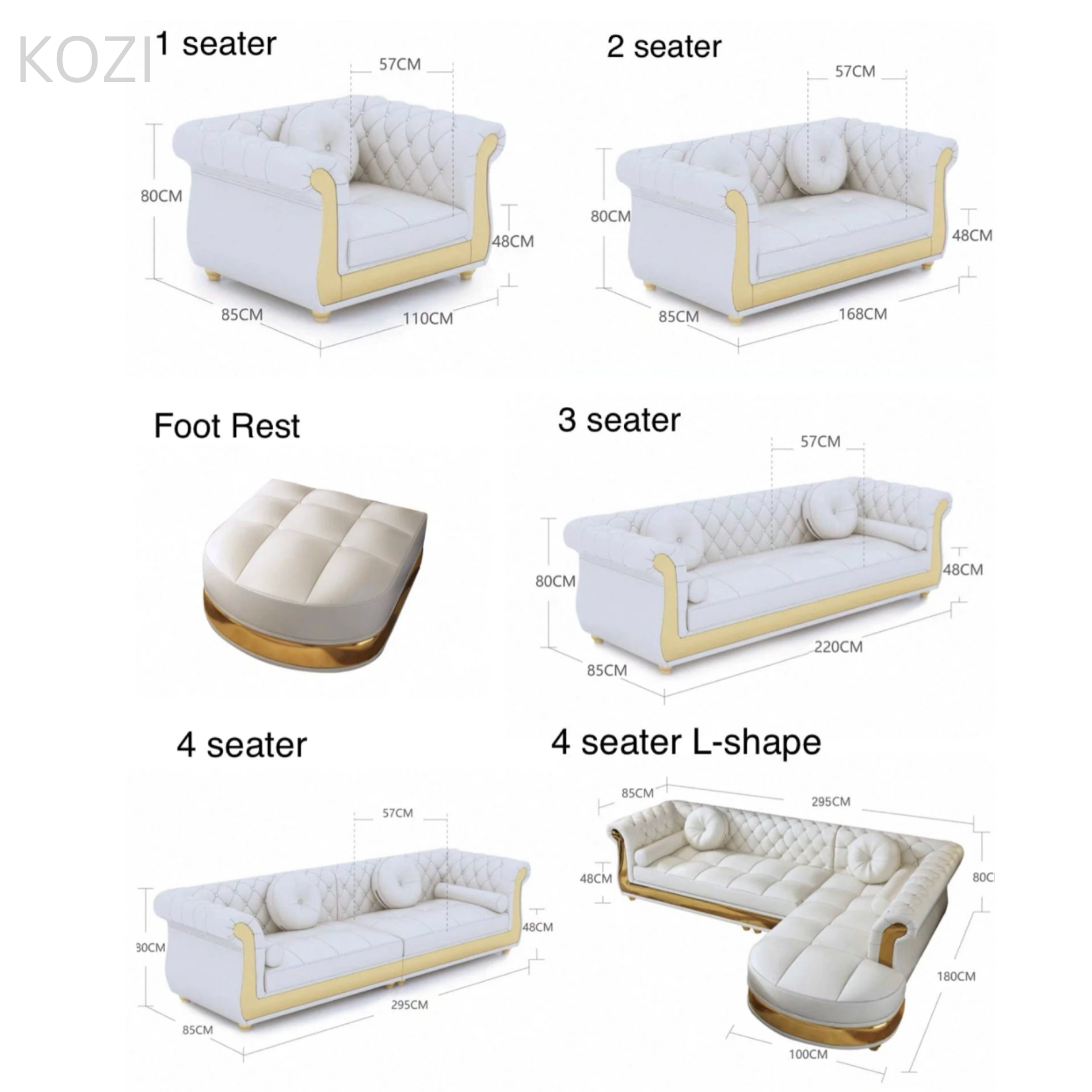 • 4 seater: L295 x W85 x H80cm