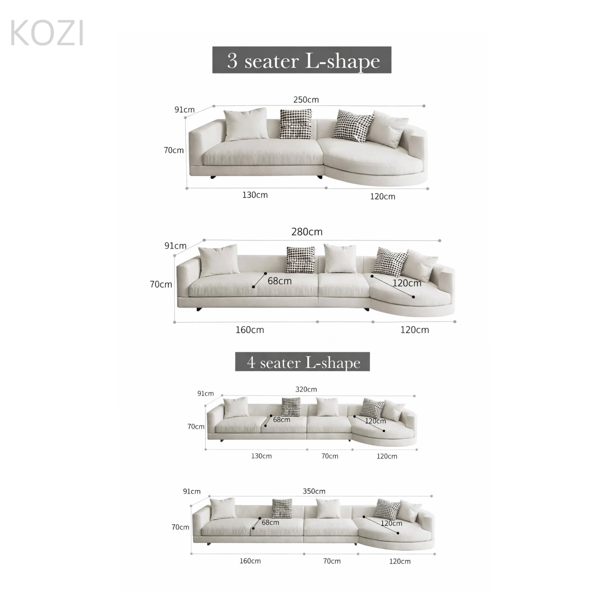 Seating Depth: 68/120cm
