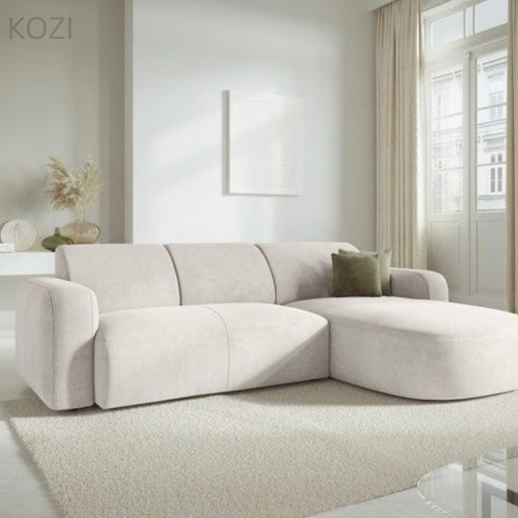 With its sleek and curved outlines, the VELORA Scratch Resistant Sectional Curve Chaise Sofa is a luxury sofa that will make your living room the centerpiece of the home. The round curve shape of the chaise and soft cushions create a relaxed look that feels comfortable, while also standing out as a stunning piece of furniture. Whether you're entertaining guests or just relaxing in your space, the VELORA sofa is the perfect addition.